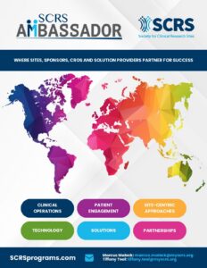 The SCRS Ambassador Program connects influential research professionals across key regions, creating a dynamic network that amplifies the voice of clinical research sites worldwide.